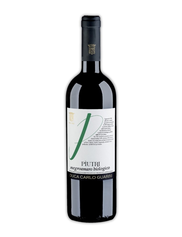 Ruby red in colour; on the nose it opens with vegetal and balsamic tones, which precede sensations of small black fruits and vanilla. On the palate it is balanced with clear tannins. Maceration with the skins for 5 days at a controlled temperature. Aging in barrique for 8 months. The wine it is a certified organic. It takes its name from a plot called 'Delli Piutri' in the countryside of Torchiarolo, between Lecce and Brindisi, where the family owned the vineyards since 1100. Cultivated 200 meters from the Adriatic Sea, the vineyards enjoy the fresh prevailing winds from the north east.